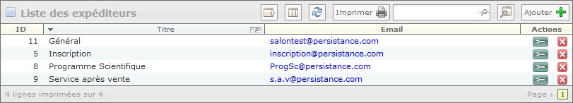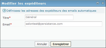 Cette option affiche la liste des expéditeurs que vous autorisez pour les envois d'e-mails, Seul les expéditeurs de cette liste pourront être utilisés lors de l'envoi d'e-mails au sein de la plateforme